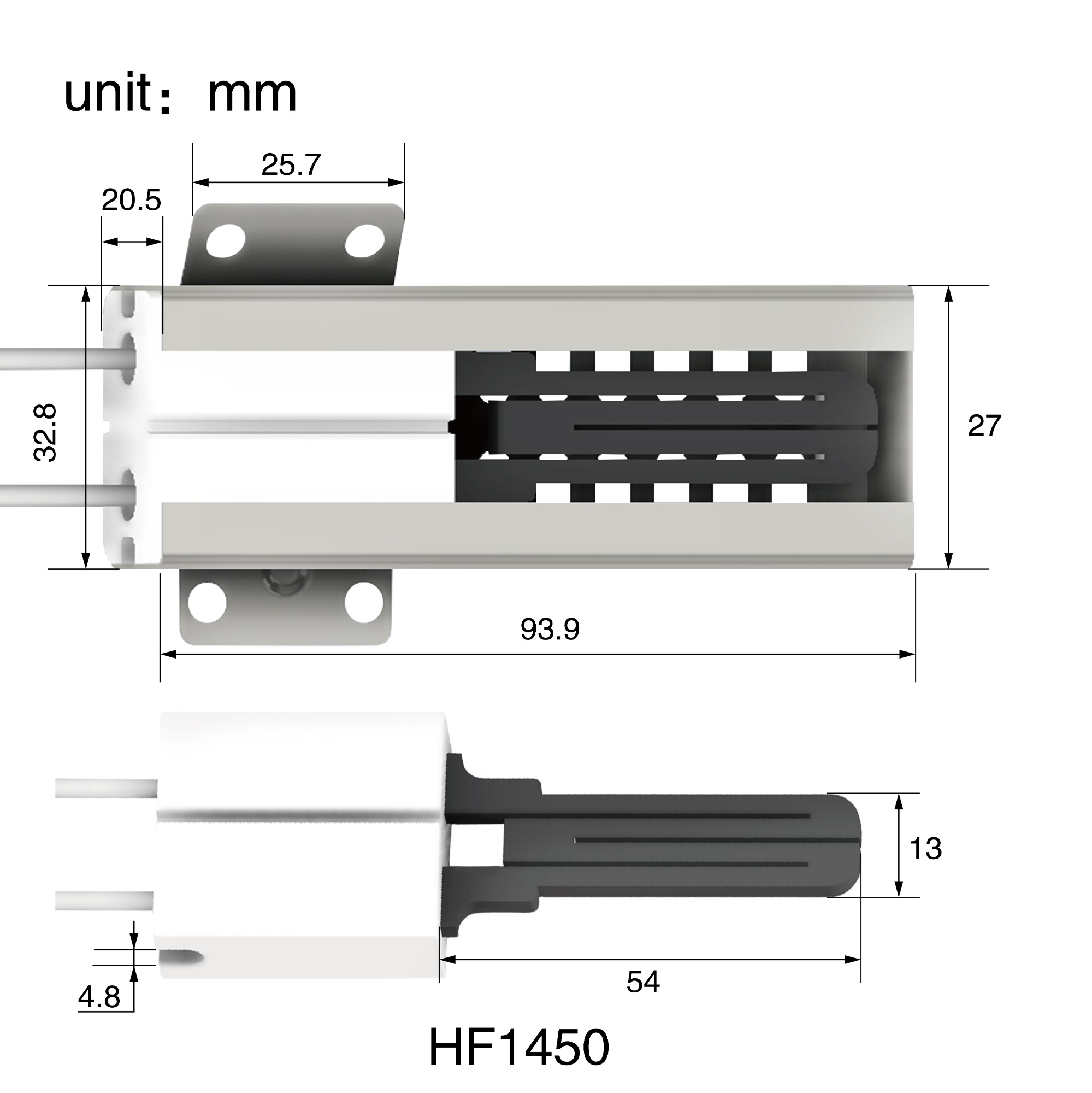 The HF1450 Furnace Hot Surface Ignitor is crafted from premium silicon nitride (Si3N4), offering exceptional thermal stability and electrical insulation. It features a customizable voltage design, with flange options including ceramic, stainless steel, and copper to suit diverse furnace configurations. The ignitor is rigorously tested to meet SGS, ISO9001, and Intertek standards, ensuring compliance with global safety and quality benchmarks.