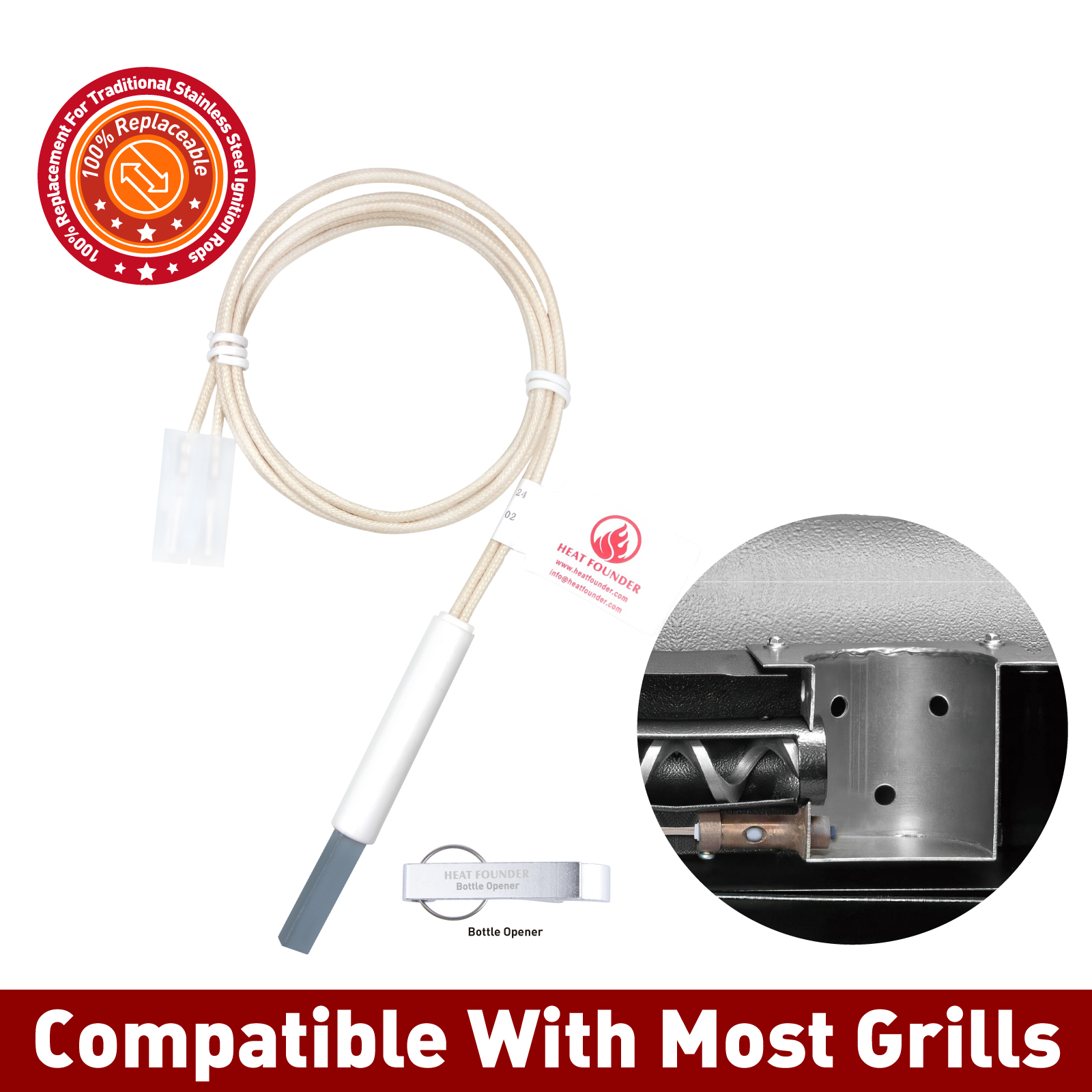 Withstands 1300°C/2372°F, 3x more durable than metal igniters