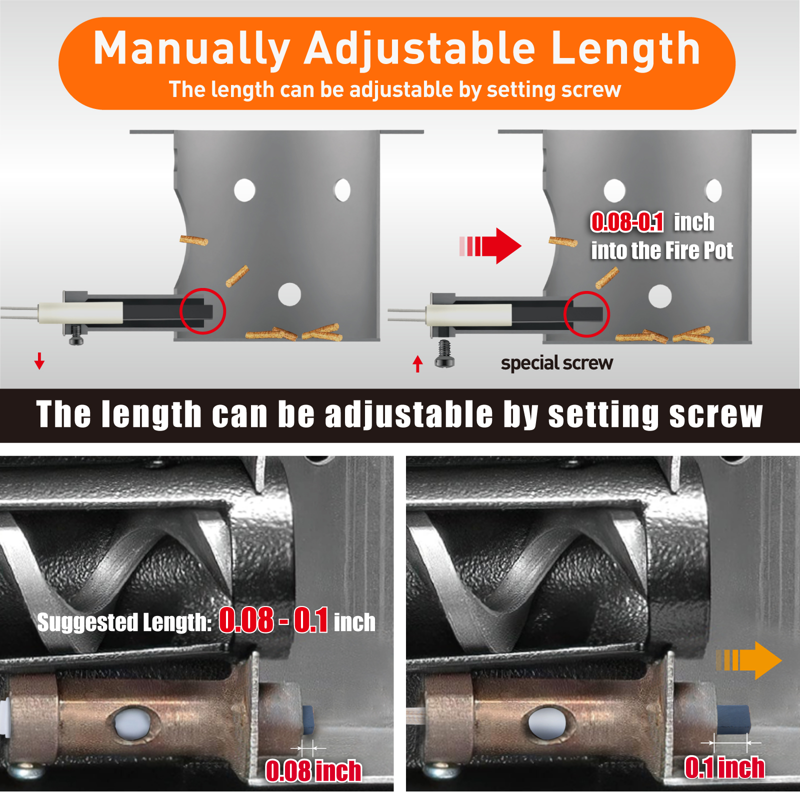 Each purchase includes a certified replacement igniter with adjustable wire lead, ceramic flange, and installation guide. Free technical support for troubleshooting pellet burner igniter problems.