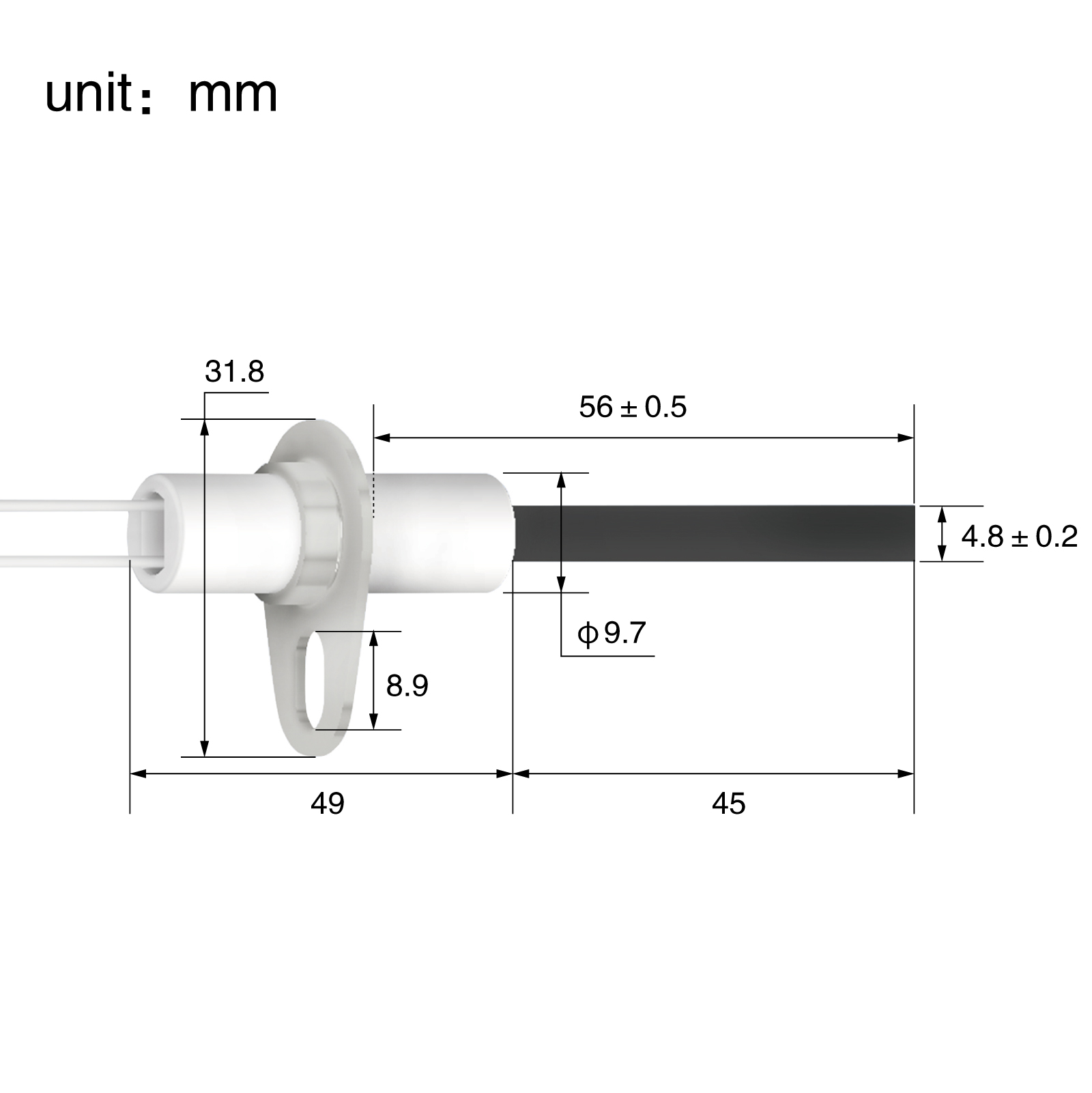 Our Universal Hot Surface Ignitor is crafted from Silicon Nitride (Si3N4), known for its exceptional heat resistance and durability. It features a customizable voltage option and comes with flanges made from ceramic, stainless steel, copper, or can be customized to fit specific needs. The ignitor operates within a temperature range of 1100~1300°C (2012~2372°F) and is capable of reaching up to 1000°C in just 10 seconds.