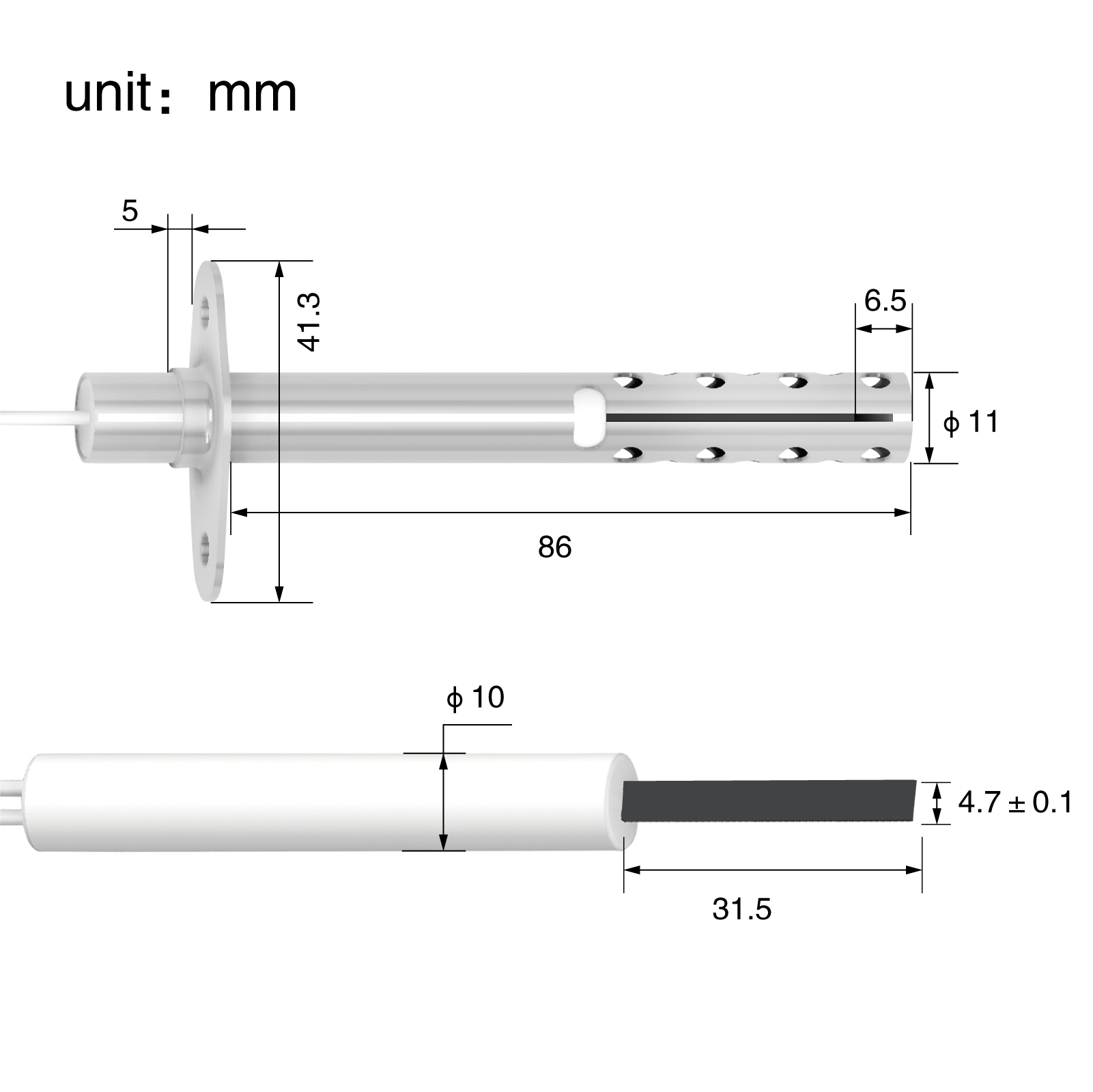 The HF240823 Silicon Nitride Ignition Rod is crafted from premium Silicon Nitride (Si3N4) material, known for its exceptional heat resistance and durability. It features a customizable voltage setting and offers a choice of flange materials including ceramic, stainless steel, and copper. The rod is designed to reach high temperatures rapidly, up to 1000°C in just 10 seconds, and can withstand continuous operation between 1100~1300°C.